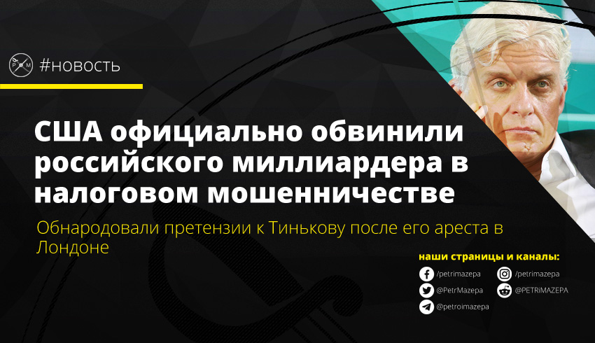 США обвиняют Тинькова в налоговом мошенничестве, а именно - в подаче ложной налоговой декларации, сообщило Министерство юстиции США.