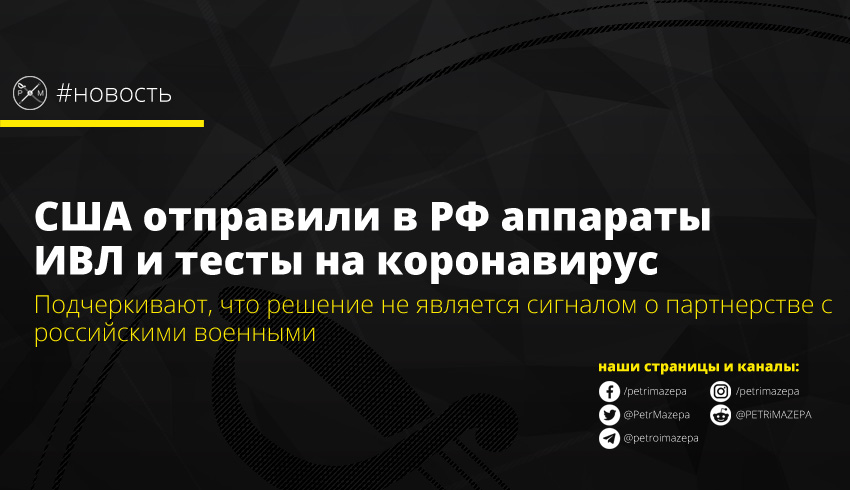 Власти США направили в РФ аппараты искусственной вентиляции легких (ИВЛ) и тесты на выявление коронавирусной инфекции. В США подчеркивают, что аппараты предназначены для жителей РФ и их поставки не свидетельствуют о партнерских отношениях Штатов с российскими военными.