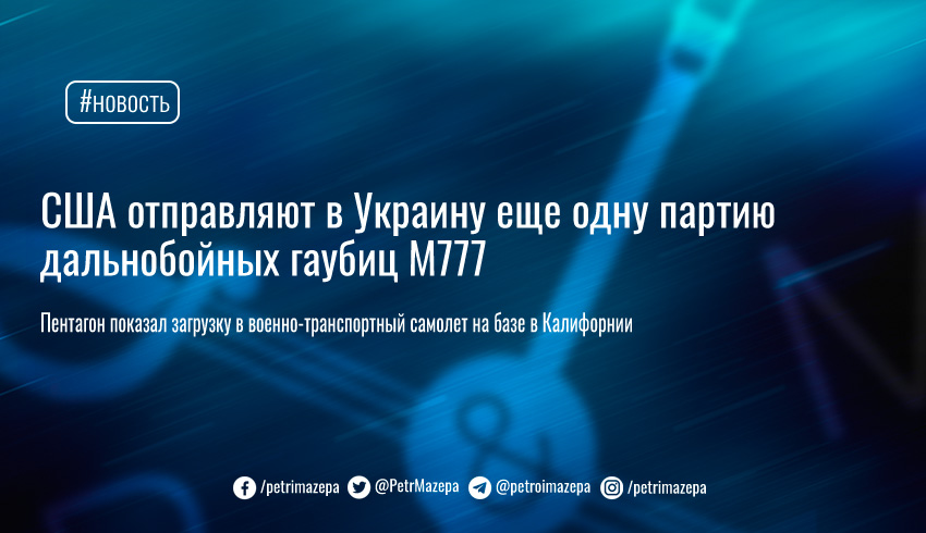 Груз с 155-мм буксируемыми гаубицами M777 погрузили в военно-транспортный самолет на базе в Калифорнии, сообщает пресс-центр Пентагона в Twitter.