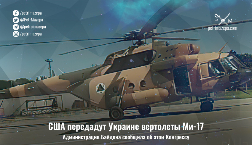 Речь идет о пяти вертолетах, которые предназначались афганской армии и ранее уже прибыли в Украину на ремонт, пишет The Wall Street Journal. По данным «Мілітарного», речь идет о военно-транспортных вертолетах Ми-17-В5.