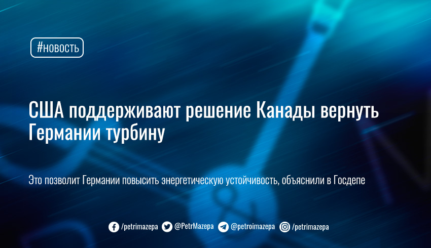 «В краткосрочной перспективе турбина позволит Германии и другим европейским странам пополнить запасы газа, повысив свою энергетическую безопасность и устойчивость, а также противодействуя усилиям России по превращению энергии в оружие», — сказал спикер Госдепа Нед Прайс.