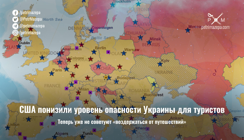 Государственный департамент США изменил уровень опасности путешествий в Украину с четвертого (воздержаться от путешествий) на третий (пересмотрите вопрос путешествий).