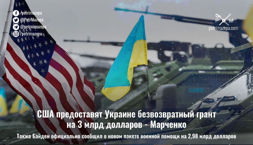 США предоставят Украине безвозвратный грант на 3 млрд долларов - Марченко
