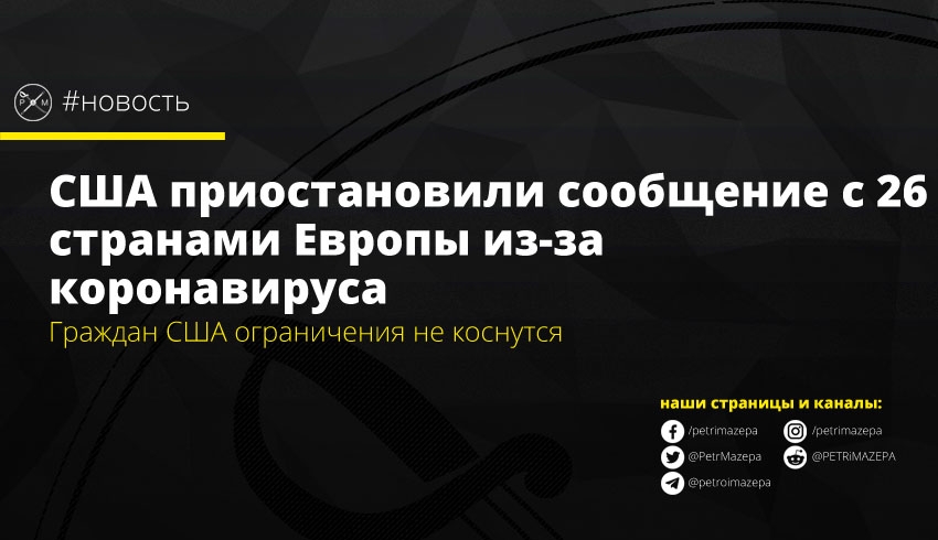 США приостановили пассажирское сообщение с 26 странами Европы из-за угрозы коронавируса. Согласно указу президента, въезд в США будет закрыт для тех, кто в течение 14 суток посещал страны Шенгенской зоны. Ограничения не касаются граждан США и торговых перевозок.