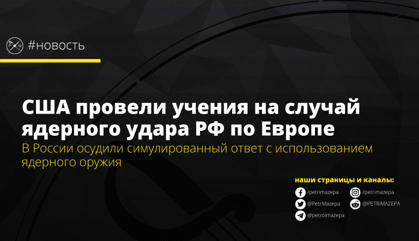 США провели учения, в ходе которых отрабатывали маневры, по сценарию которых РФ нанесла ядерный удар по объекту НАТО в Европе. Как заявили в Пентагоне, симулированная ситуация предполагала непредсказуемую ситуацию, где идет война с Россией, и ответ предполагался также с использованием ядерного оружия.
