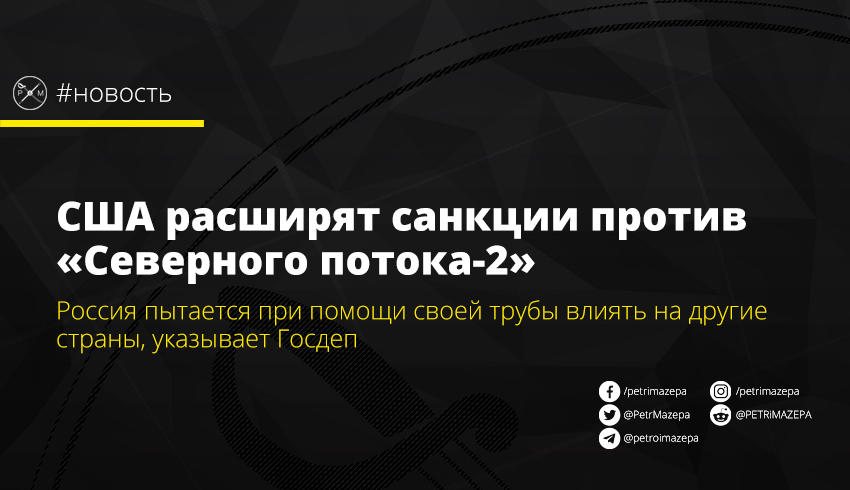 Госдеп указывает, что санкции будут расширены в связи с давлением России на другие страны. В санкционный список попадут компании, которые помогают модернизировать или устанавливать оборудование на суда, используемые для укладки труб.