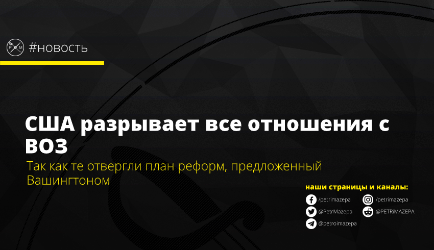 Президент США Дональд Трамп заявил, что США разрывает все отношения с Всемирной организацией здоровья, так как та отказалась проводить необходимые реформы.