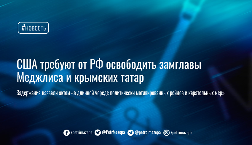 США называют эти события последним актом «в длинной череде политически мотивированных рейдов, задержаний и карательных мер» против Меджлиса и его руководства, которое подвергается репрессиям за сопротивление попытке России аннексировать Крым.
