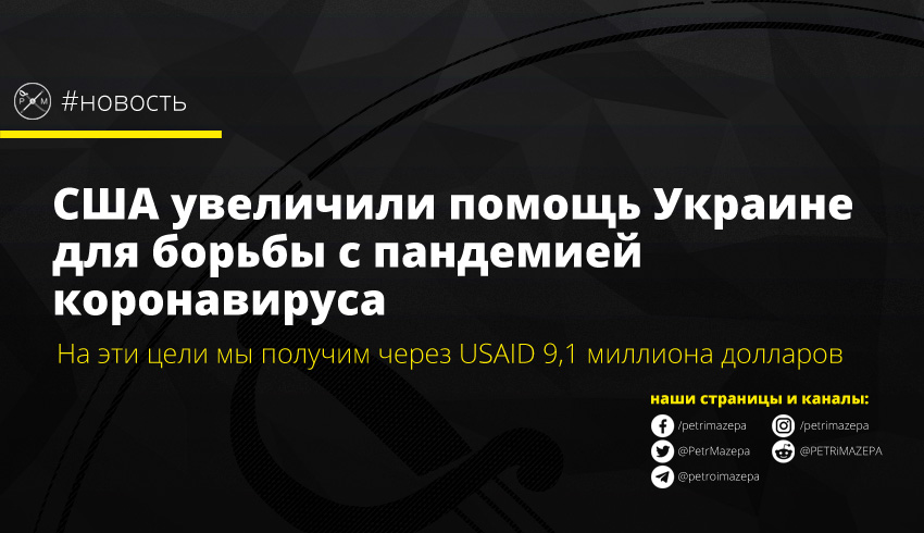 Посольство Украины в США сообщает, что Соединенные Штаты расширили помощь Украине в борьбе с коронавирусом COVID-19. Украина получит через Агентство США по международному развитию (USAID) 9,1 миллиона долларов.