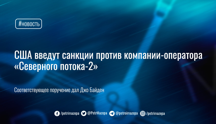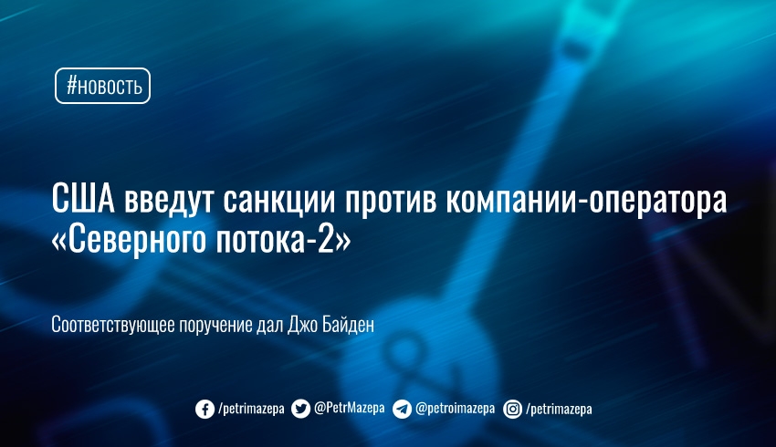 Президент США Джо Байден поручил ввести санкции против компании-оператора российского газопровода «Северный поток-2» - Nord Stream 2.