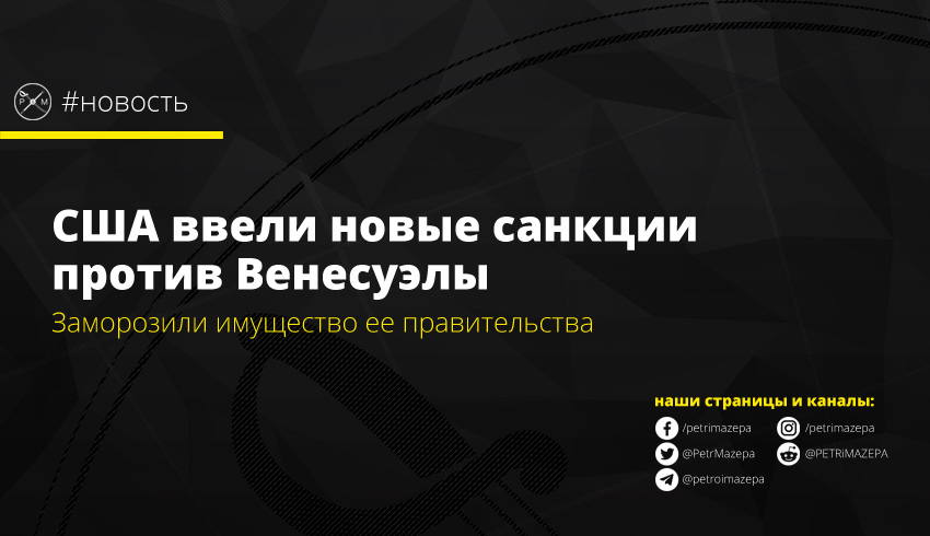 США ввели новые санкции против Венесуэлы, направленные на блокирование активов ее правительства. В этот раз Штаты заморозили все имущество венесуэльского правительства, которое находится на территории США. В своем решении Дональд Трамп пояснил, что Николас Мадуро продолжает узурпировать власть в Венесуэле и дает возможности стране развиваться по демократическому сценарию.