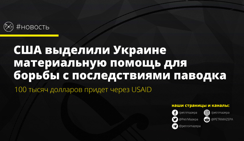 Как сообщает на своей странице в Facebook Посольство США в Украине, «с помощью USAID американский народ предоставит новое финансирование в размере 100 000 долларов США для поддержки Украины в борьбе с этой гуманитарной катастрофой».