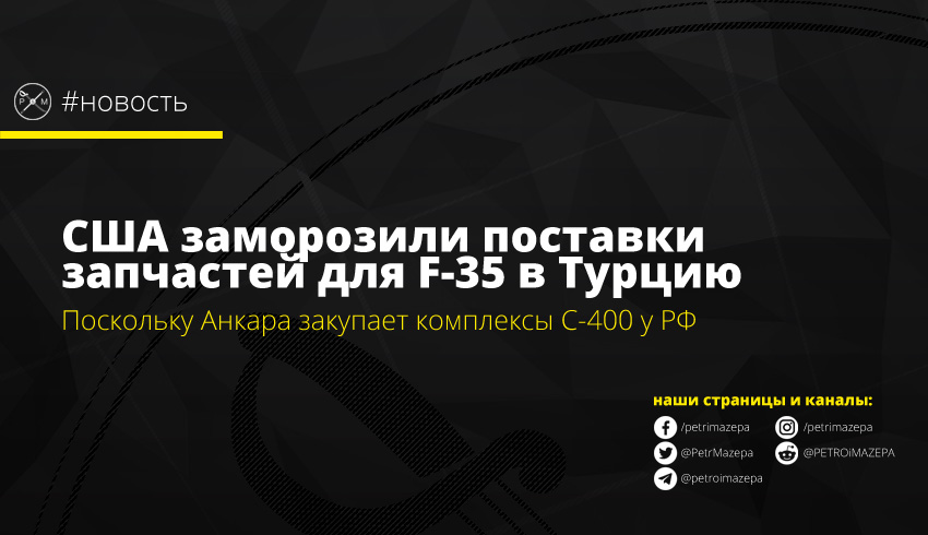 США прекратили поставки в Турцию запчастей для истребителей F-35. Причиной принятия такого решения стало проведение Анкарой закупок российских зенитно-ракетных комплексов С-400.