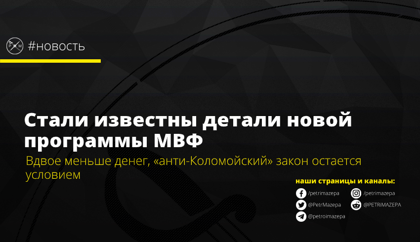 Стали известны условия новой программы сотрудничества Украины и МВФ. Ее срок составит 18 месяцев, а вместо 8 миллиардов долларов Украина получит около 4 миллиарда. В то же время, принятие «анти-Коломойского» закона остается ключевым условием.