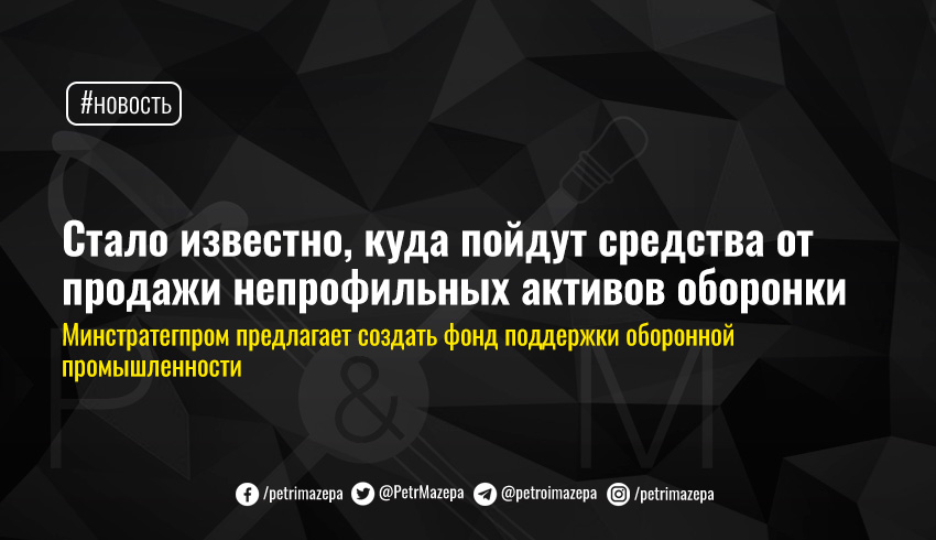 Министерство по вопросам стратегических отраслей намерено создать государственный целевой фонд поддержки оборонной промышленности за счет части средств от продажи непрофильных и профильных активов отрасли.