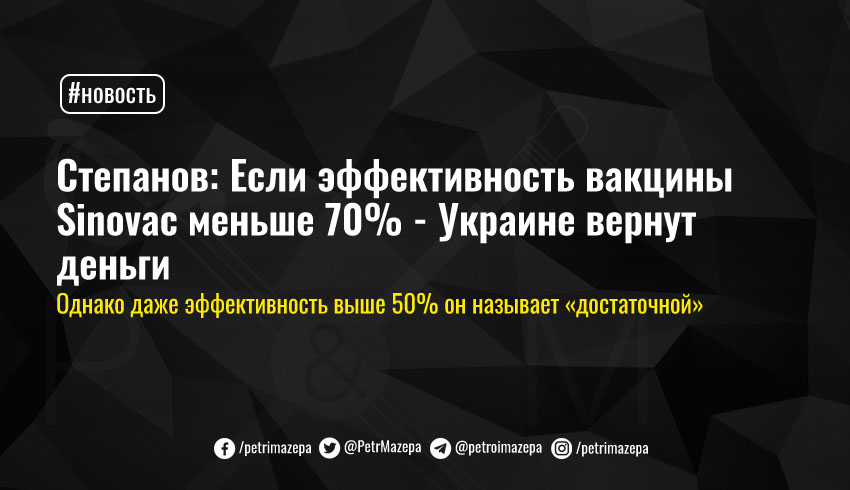Степанов: Если эффективность вакцины Sinovac меньше 70% - Украине вернут деньги