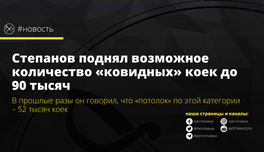 Начинал минздрав борьбу с эпидемией коронаируса с 12 704 мест для госпитализации для больных COVID-19. В последние несколько месяцев Степанов называл в качестве предела – 52 тысячи коек для больных COVID-19.