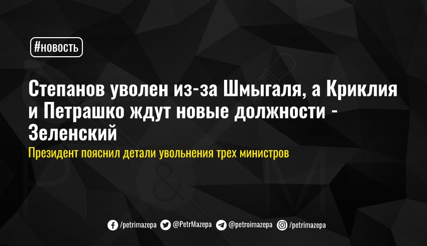 Степанов уволен из-за Шмыгаля, а Криклия и Петрашко ждут новые должности - Зеленский