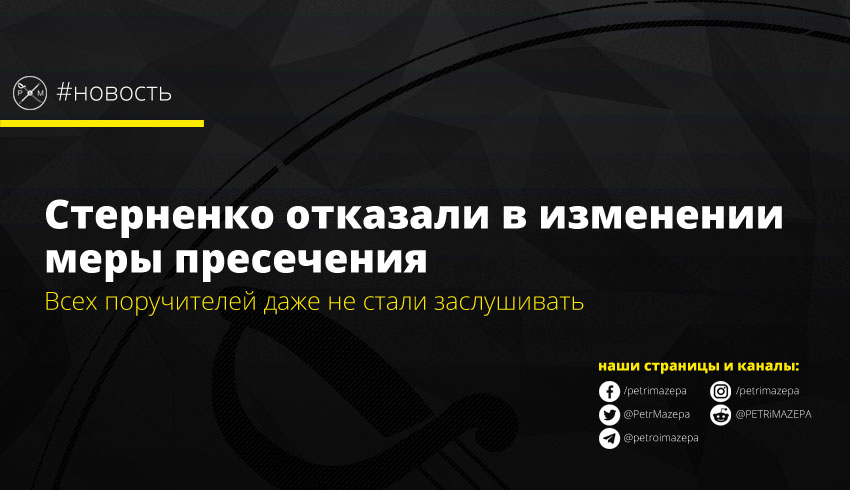- Во второй половине дня 16 июня Шевченковский районный суд Киева удовлетворил ходатайство прокурора в деле Сергея Стерненко, и изменил место отбывания домашнего ареста с места прописки на место фактического проживания.