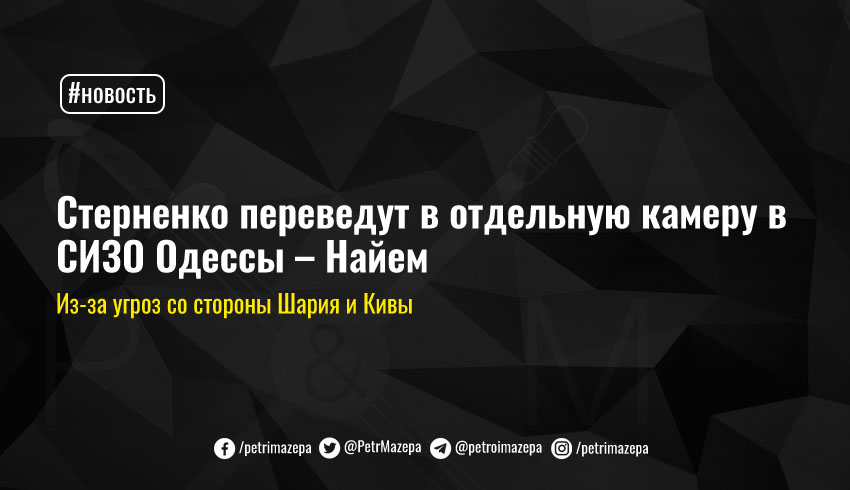 Сергея Стерненко, который находится в СИЗО Одессы после вынесения приговора по делу о похищении человека, переведут в отдельную камеру ради его безопасности. Как сообщил адвокат Маси Найем, Стерненко продолжают угрожать пророссийские силы, а именно Анатолий Шарий и нардеп Илья Кива.
