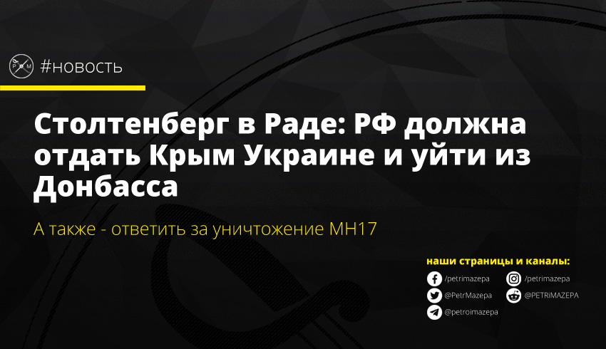 Столтенберг в Раде: РФ должна отдать Крым Украине и уйти из Донбасса