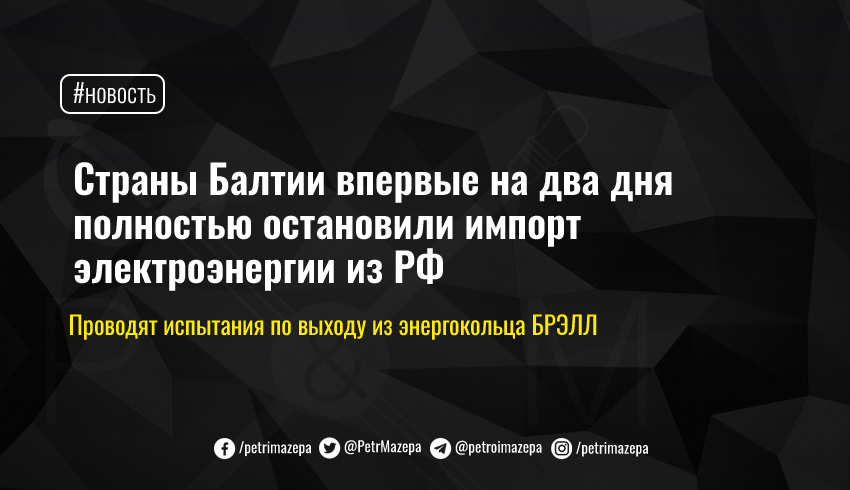 Страны Балтии впервые полностью отключились от электроэнергии из России в ходе испытаний по выходу из энергокольца БРЭЛЛ (Беларусь, Россия, Эстония, Латвия и Литва). Окончательный отказ от электроэнергии из РФ запланирован на 2025 год.