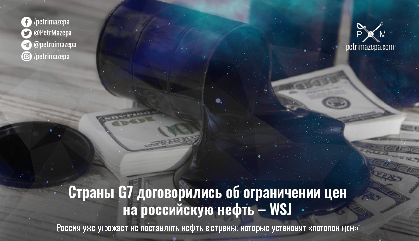 США, Великобритания и другие государства «большой семерки» договорились о введении ограничения цен на российскую нефть и нефтепродукты. Ожидается, что уже завтра министры финансов стран G7 представят финальный план по установлению «потолка цен» на российскую нефть. В России уже заявили, что не будут поставлять нефть и нефтепродукты странам, которые установят ограничения на цены. Об этом сообщает WSJ.