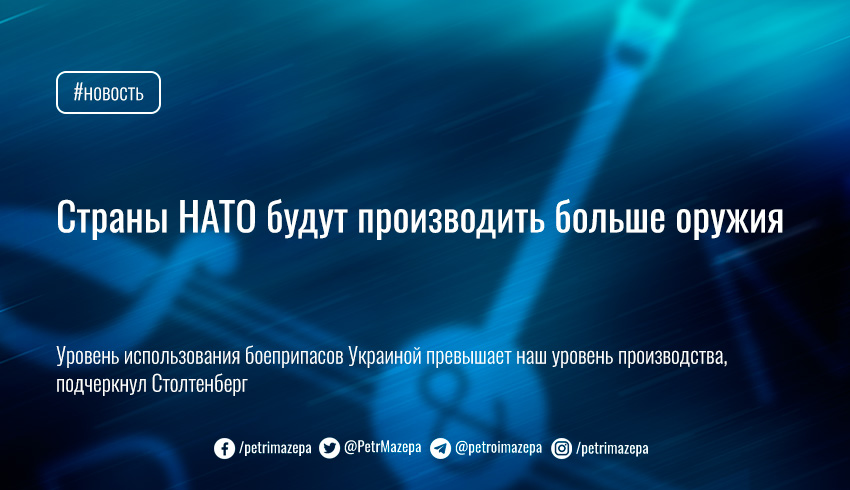 «Война в Украине… опустошает арсеналы союзников. Текущий уровень использования боеприпасов Украиной во много раз выше нашего уровня производства. Это давит на нашу оборонную промышленность. К примеру, ожидание боеприпасов большого калибра увеличилось с 12 до 26 месяцев. Заказы, размещенные сегодня, будут доставляться всего через два с половиной года», — сказал Столтенберг.