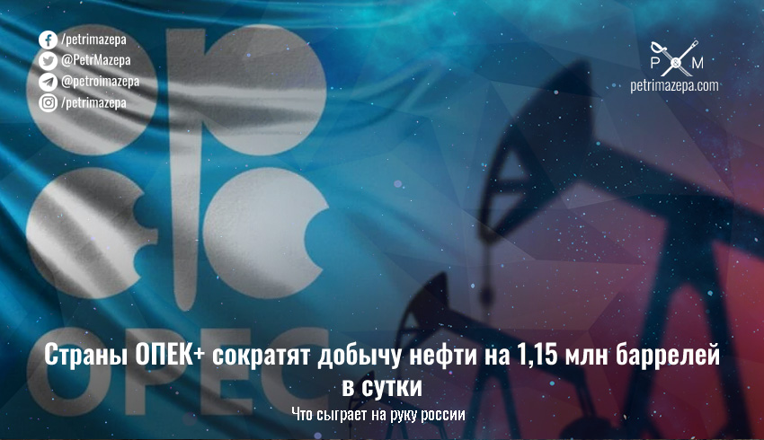 Страны ОПЕК+ сократят добычу нефти на 1,15 млн баррелей в сутки