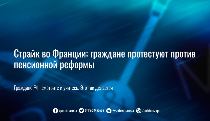 Во Франции стартовала общенациональная забастовка. Протестующие выступают против пенсионной реформы, в которой закладывается повышение пенсионного (соответственно) возраста.