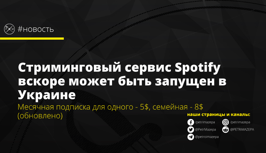 Стриминговый сервис Spotify вскоре может быть запущен в Украине