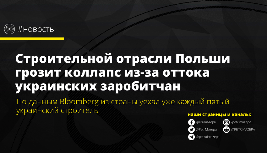 Об этом сообщает издание Bloomberg. По данным издания, из Польши уехал уже каждый пятый украинский строитель. В свою очередь польские заробитчане не могут вернуться в Польшу. «Такое отсутствие рабочих приведет к значительному уменьшению возможностей отрасли», - сказано в открытом письме Польской ассоциации работодателей строительной отрасли к правительству.