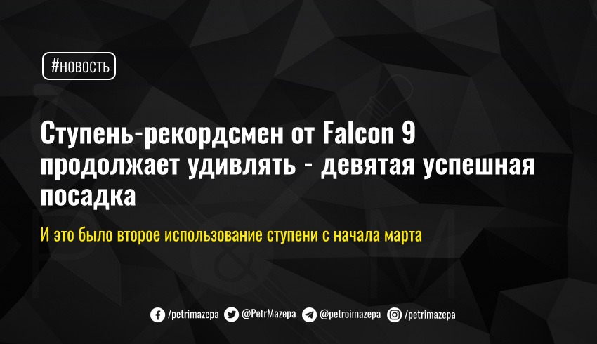 Ступень-рекордсмен от Falcon 9 продолжает удивлять - девятая успешная посадка