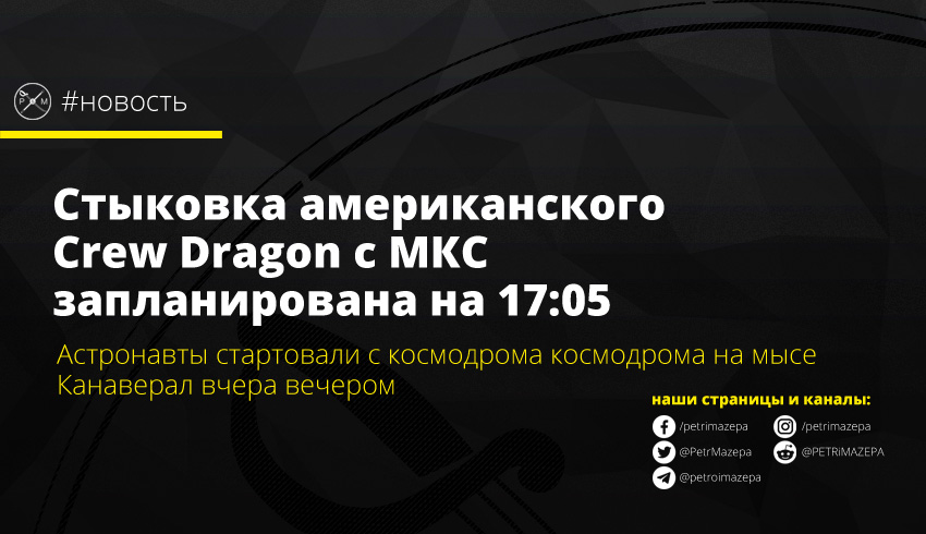 Стыковка американского Crew Dragon с МКС запланирована на 17:05