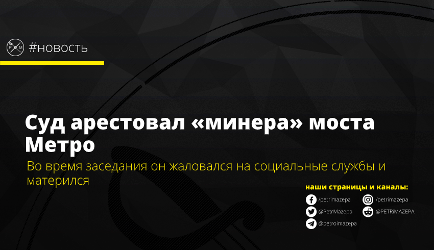 Об этом сообщает пресс-служба прокуратуры. «По ходатайству Киевской местной прокуратуры № 4 мужчине, который 1 июня 2020 года угрожал взорвать мост Метро, избрана мера пресечения в виде содержания под стражей сроком 60 дней с возможностью внесения залога в сумме 315 тыс. гривень», - сказано в сообщении.