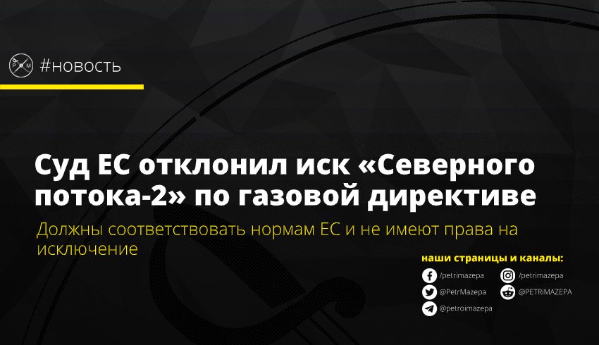 Суд Европейского союза вынес решение касаемо иска компаний «Nord Stream AG» (на 51% принадлежит Газпрому) и «Nord Stream 2 AG» (полностью принадлежит Газпрому). Согласно нему «Северный поток-2», если он будет достроен, должен действовать в соответствии с регулированием ЕС и не имеет права на исключение.
