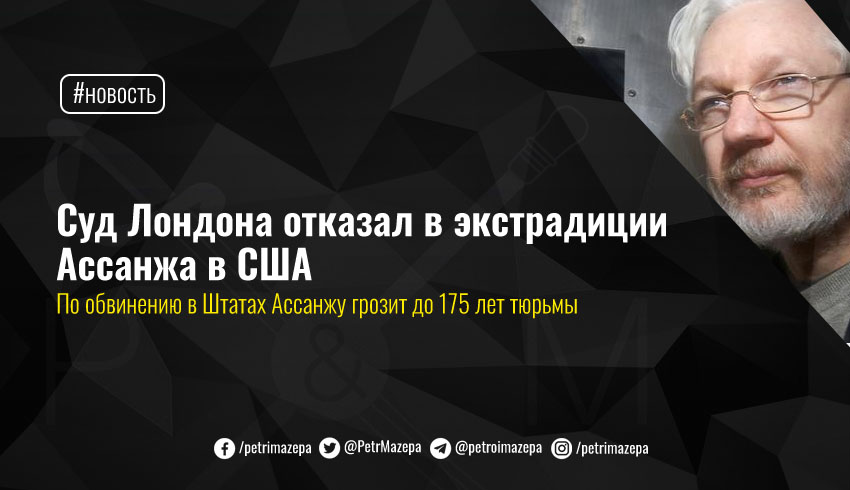 Суд в Лондоне отказал в экстрадиции основателя WikiLeaks Джулиана Ассанжа в США. Такое решение он принял сегодня, 4 января.