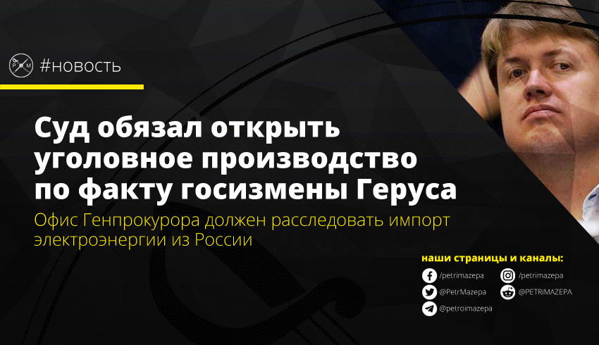 Печерский районный суд Киева обязал Офис генерального прокурора начать уголовное производство по факту государственной измены народного депутата, главы комитета ТЭК Верховной рады Андрея Геруса. Причиной является его роль в возобновлении импорта электроэнергии из РФ.