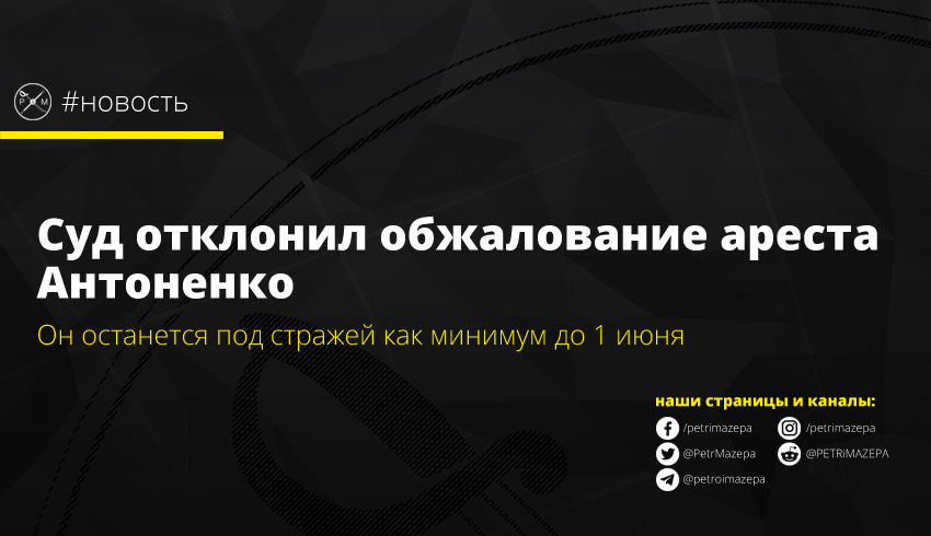 Киевский апелляционный суд рассмотрел апелляционную жалобу адвокатов Антоненко на постановление Печерского райсуда от 3 апреля и отклонил ее. Соответственно, Антоненко останется под стражей до 1 июня текущего года.
