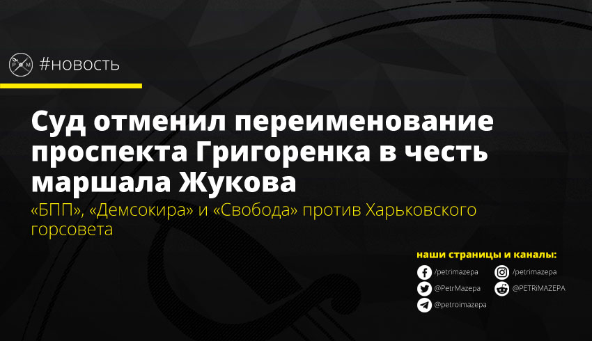 Окружной административный суд Харькова признал незаконным переименование харьковского проспекта Петра Григоренка в честь сталинского маршала Жукова.