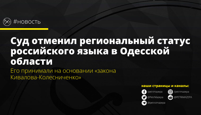 Окружной административный суд Одессы удовлетворил иск первого зампрокурора Одесской области, и признал недействительным решение Одесского облсовета о предоставлении русскому языку статуса регионального.