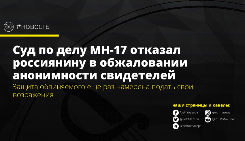 Суд по делу MH-17 отказал россиянину в обжаловании анонимности свидетелей