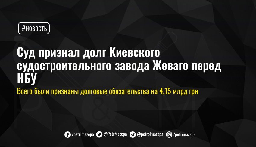 Суд признал долг Киевского судостроительного завода Жеваго перед НБУ