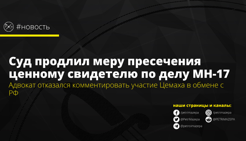 - Накануне в средствах массовой информации появились данные, что Украина согласилась с требованием РФ внести в список на обмен заключёнными экс-командира «ПВО ДНР» Владимира Цемаха. Но Нидерланды просят не выдавать Цемаха Москве, так как он является важным фигурантом в деле о крушении «Боинга» MH17.