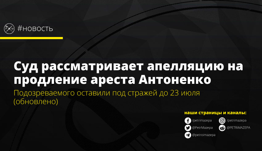 Апелляционный суд отклонил жалобу Андрея Антоненко по мере пресечения – его оставили под арестом до 23 июля, сообщает «Еспресо.TV».