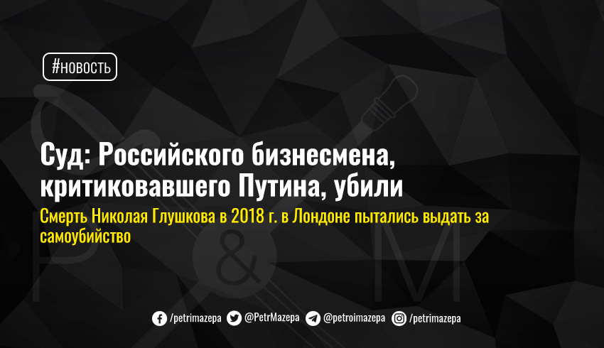 Смерть российского бизнесмена Николая Глушкова, критиковавшего президента России Владимира Путина, признана убийством.