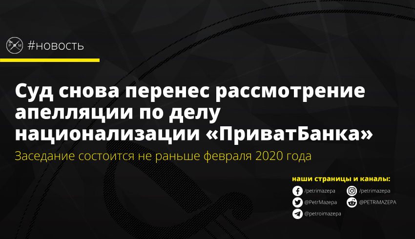 Суд снова перенес рассмотрение апелляции по делу национализации «ПриватБанка»