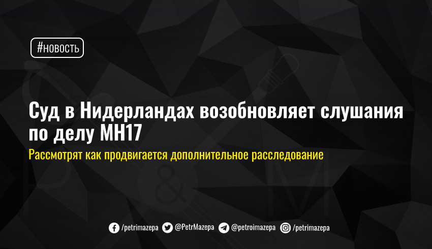 Сегодня в Нидерландах продолжились судебные слушания по делу о катастрофе малазийского Boeing рейса MH17 на Донбассе в июле 2014 года. На этих слушаниях, в частности, предстоит рассмотреть, как продвигается дополнительное расследование, обращение родственников погибших относительно компенсаций и др.