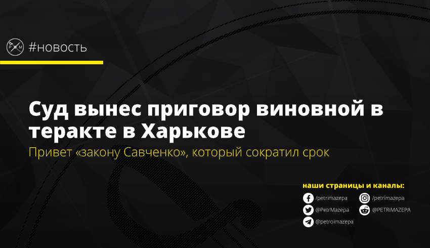 Об этом сообщает харьковское издание Newsroom. 9 ноября 2014 года на улице Рымарской в Харькове был совершен взрыв в пабе «Стена». Тогда в результате теракта пострадало 13 человек. За это преступление была задержана группа диверсантов, однако большинство из них было обменяно на наших военнопленных, однако Марину Ковтун, как организатора, решили судить здесь. По итогу коллегия судей признала ее виновной и приговорила к 11 годам лишения свободы.