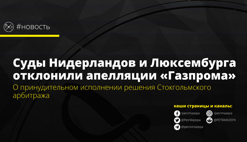 Апелляционный суд в Нидерландах и Окружной суд Люксембурга приняли решение в пользу «Нафтогаза», и отклонил апелляции российской компании касательно принудительного исполнения решения Стокгольмского арбитража.